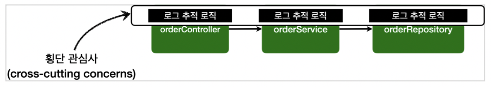 - 공통 관심사: 여러 객체에서 공통적으로 사용되는 코드